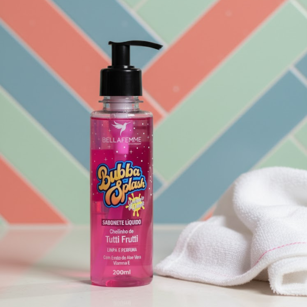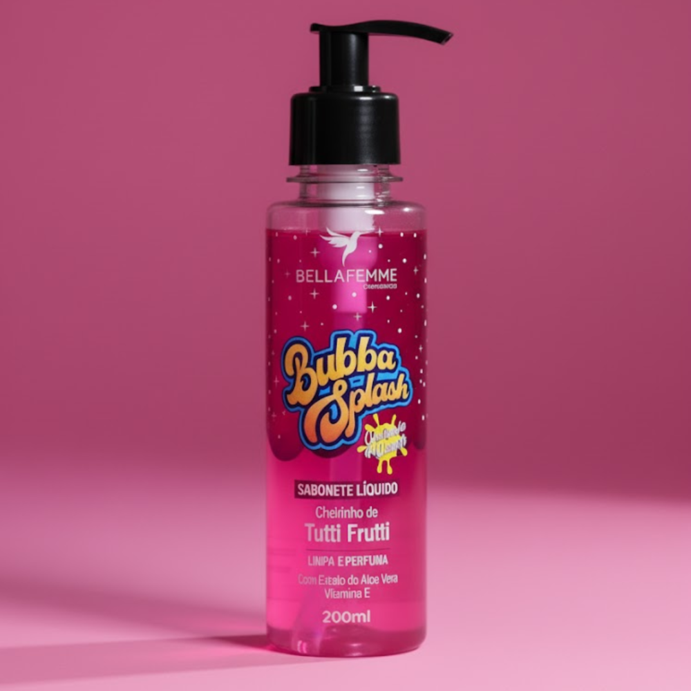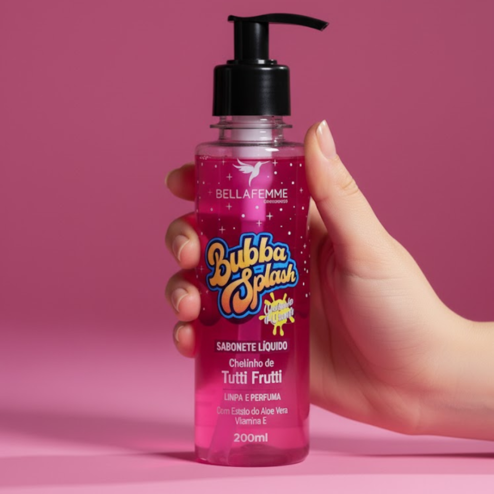 Transforme a hora de lavar as mãos ou tomar banho em uma explosão de diversão e cuidado! O Sabonete Líquido Bubba Splash da Bella Femme Cosméticos traz o delicioso e nostálgico cheirinho de Tutti Frutti, que as crianças (e adultos!) vão amar.