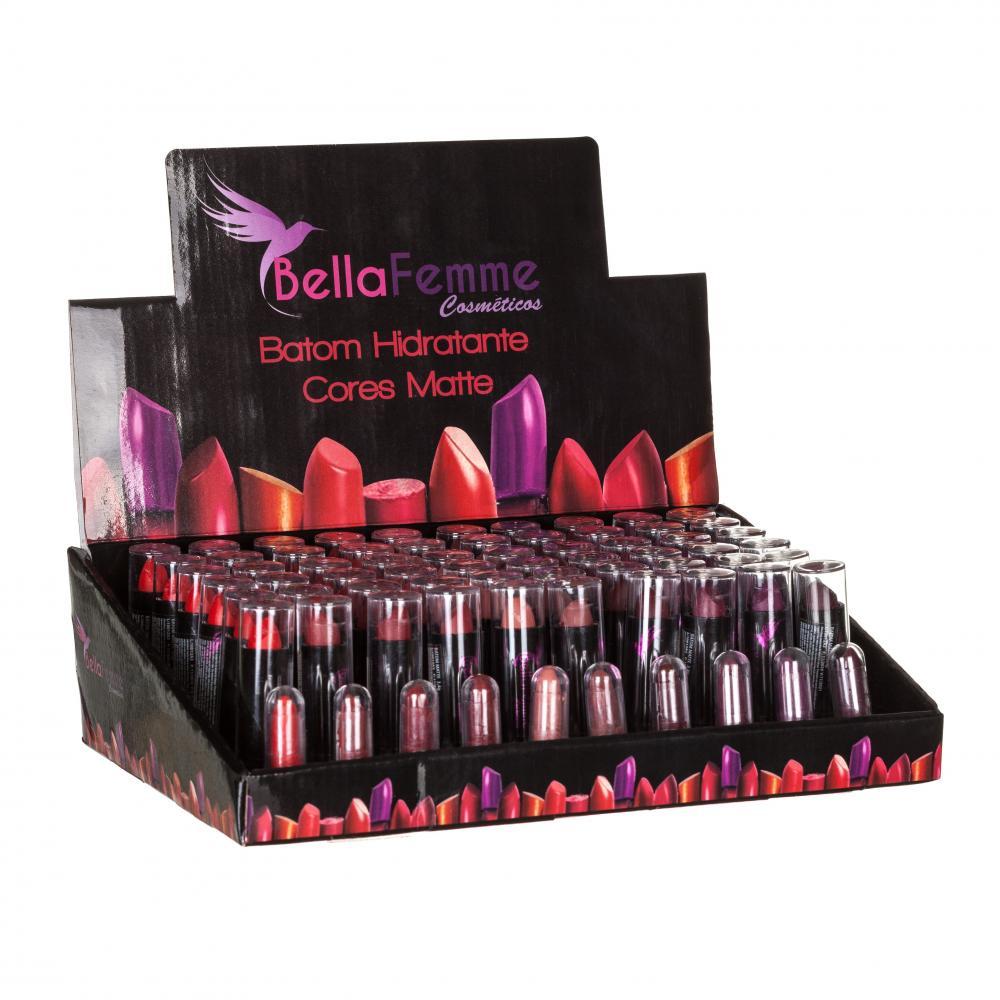 O Batom Hidratante da Bella Femme possui aroma suave, acabamento matte e textura macia.
